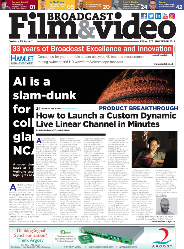 Our client Switch Media are featured in the latest Broadcast Film and Video talking about How to launch a custom dynamic live linear channel in minutes.. Read the full article here.